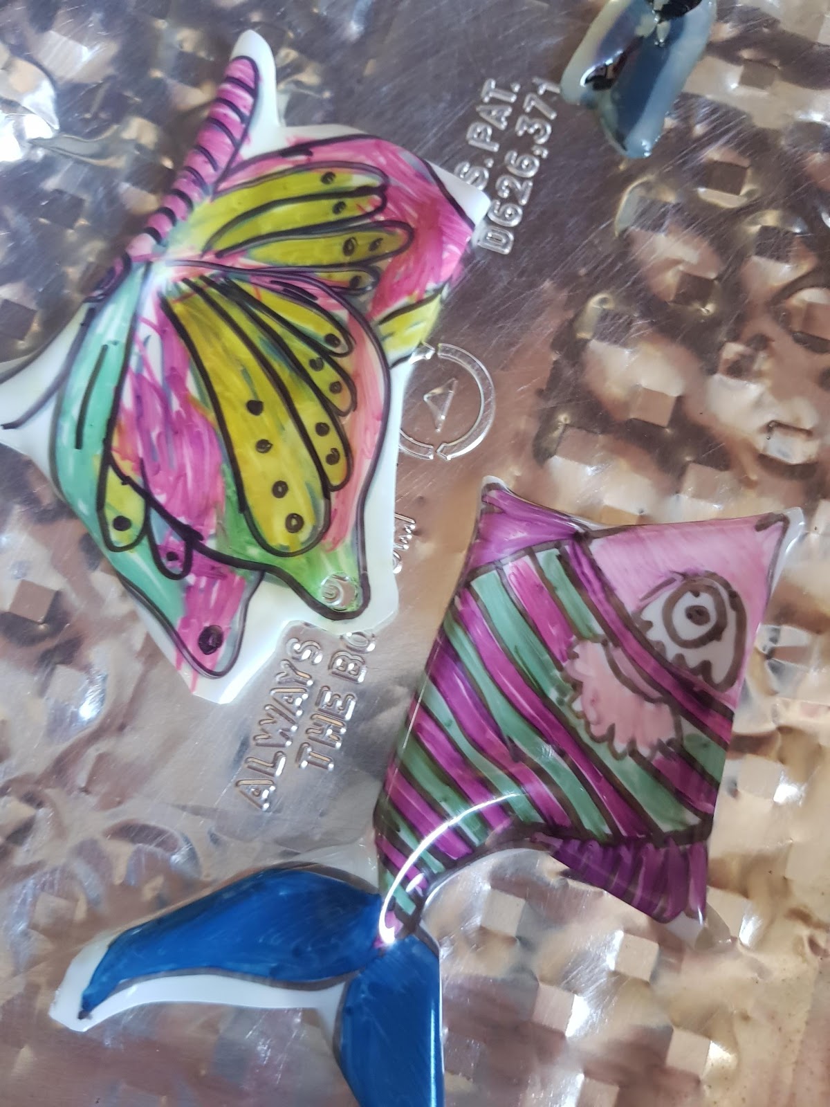 הכל התחיל בתמונה ורעיון שרץ לי הרבה זמן בראש. לפני מלא זמן הכנו מחזיקי מפתחות מפלסטיקים שחיממנו בתנור והתכווצו בקסם. גליונות הפלסטיקים המיוחדים נגמרו כבר מזמן, אבל התמונה הזו הבטיחה שאפשר גם מפלסטיק ממוחזר!